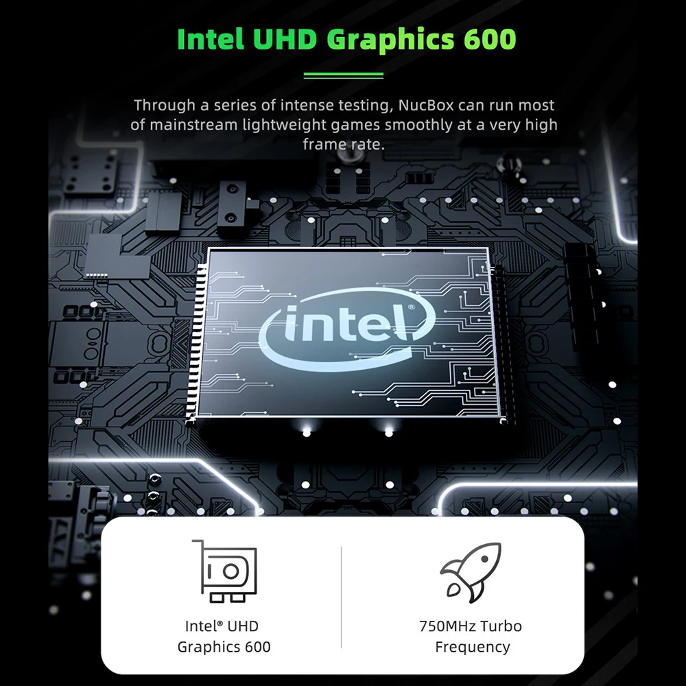 Intel UHD Graphics 600 GPU, can run most of mainstream games smoothly at a high frame rate.