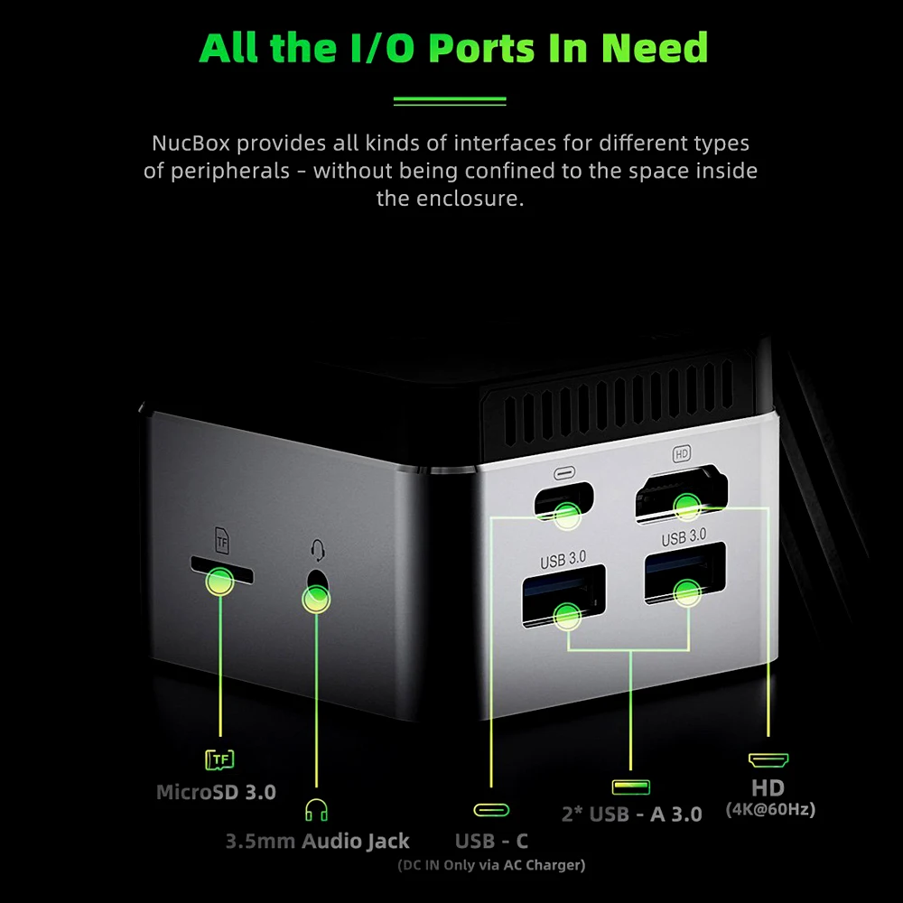 Interface: 2*USB3.0, 1*HD(4K@60Hz), 1*3.5mm audio jack, 1* Type-C, 1*TF card slot