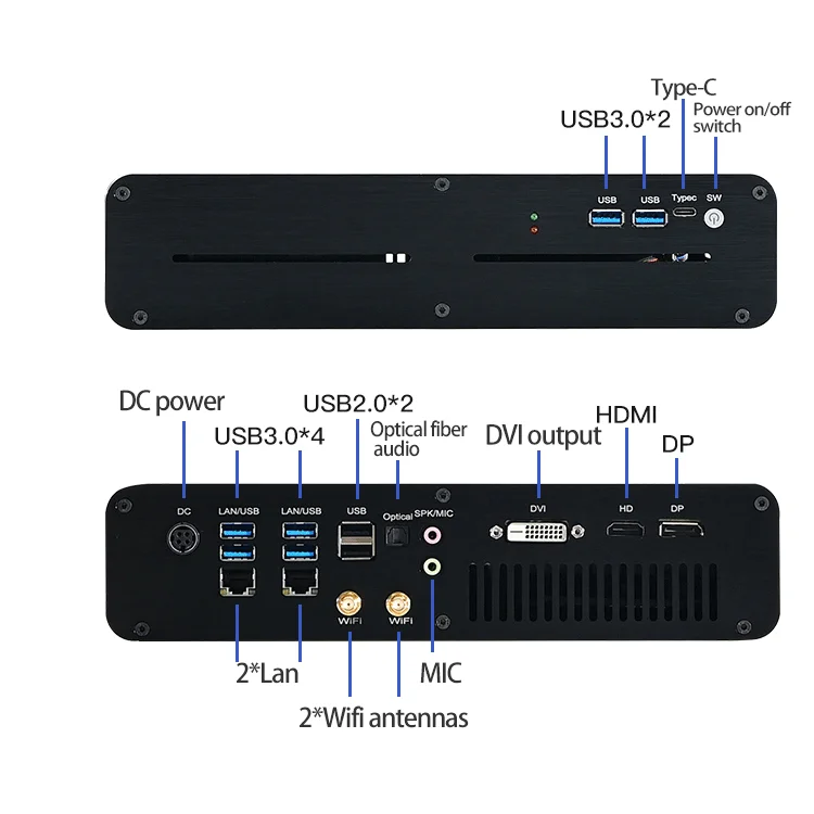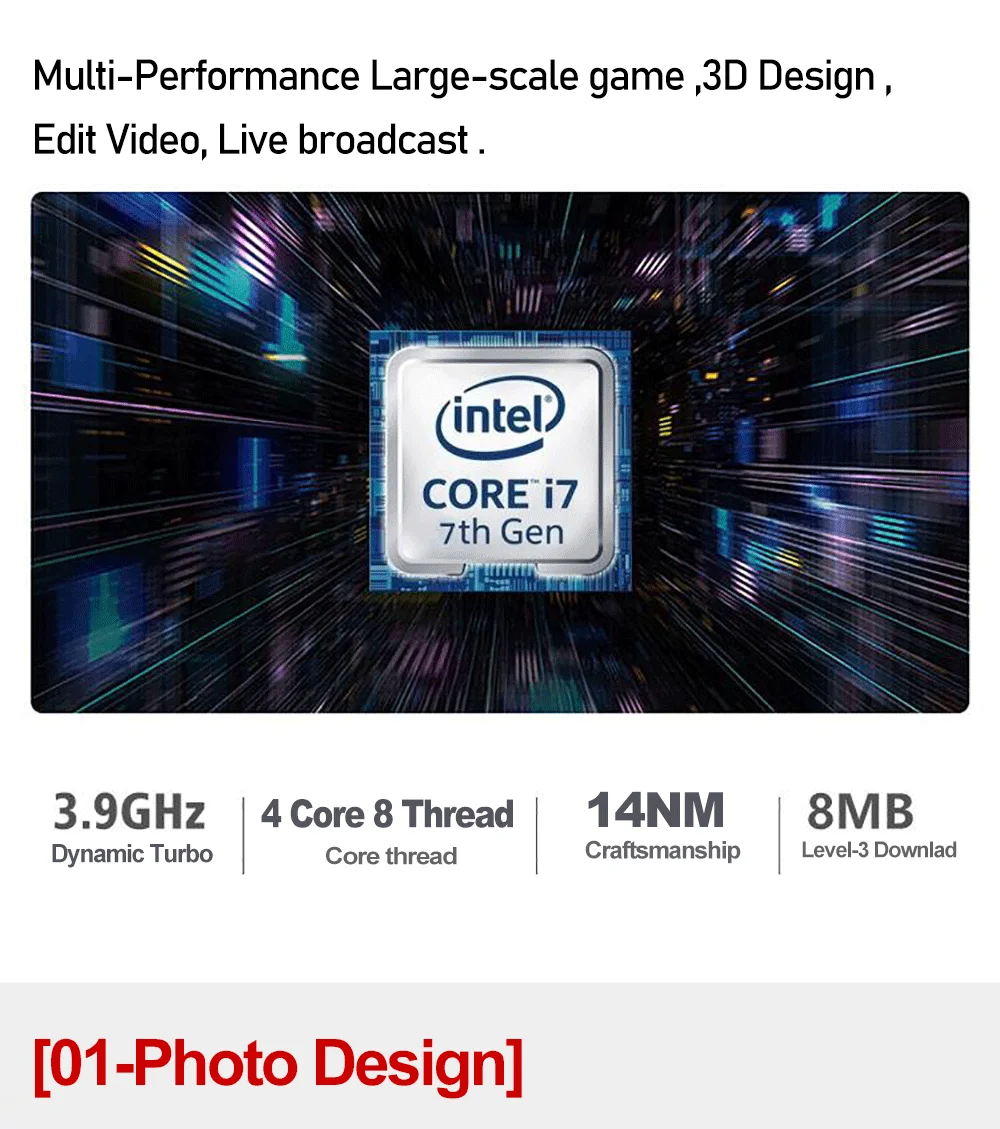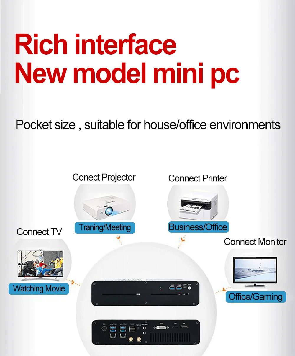 7th Gen 14nm CPU Kaby Lake Intel Core i7 7820HQ 4 cores 8 threads 2.9GHz up to 3.9GHz 8MB cache TDP 45W HD Graphics 630. Motherboard: H310 Memory: 2*DDR4 ram slots, max 64GB 2400MHz Storage: 1*M.2 22x80 SATA/NVME/PCIE3.0x4 SSD+1*2.5'' SATA Graphic card: Gigabyte Nvidia GeForce GTX 1650 4GB GDDR5-Desktop Version Video ports: 1*HDMI 2.0, 1*DP, 1*DVI, max 3*displays, support 4K@60Hz HDR BIOS: AMI BIOS, ACPI supported, support Auto Power on Function Network card: 2xRTL 8111DL Gigabit Ethernet Lans+2.4G/5G AC WiFi Audio Card: ALC892 chipset, support 6 audio channel USB: 6*USB3.0+2*USB2.0+Type-C USB3.0 Heat-sink: 3xturbo cooler Power Supply: 19V 45W Color: Black Barebone Mini PC ("No Ram No Storage" bundle) package DO NOT include WiFi(antennas), if you need, please pay extra US $7 at this link. Other bundles include WiFi(antennas). PC had best to use Samsung, SKhynix, Micron etc original brand accessories, We DO NOT compensate for buyer's own ram and hard drive. Free Operating System: Default installed our trial activated OEM windows 10 pro English for free, other languages can be selected among: Russian,Spanish,Portuguese,French,German,Arabic,Italian,Japanese,Turkish,Greek etc. Please inform us which language you want to install. Other systems we can install free are like Linux, XBMC(Kodi), Ubuntu, Openelec etc if you need. Seller is irresponsible and makes no compensation for function of OEM system. Accessories as Ram, SSD, HDD, we use famous brand:samsung, micron, SanDisk, toshiba, hynix, crucial, liteon, kingfast, phison etc, What brand we use depends on our test and our stock. 2. External USB DVD-ROM add extra cost $18. 3. USB 2.4GHz Air Keyboard& Mouse, add extra cost $20. 4. Genuine license sticker add extra cost 35$. 5. 500GB 2.5'' HDD add extra 50$, 1TB 2.5'' HDD add extra 65$, 2TB 2.5'' HDD add extra 100$. Uprading link: https://www.aliexpress.com/item/4000052929463.html (How many dollars to upgrade, pay how many pieces, US$1=1pcs, For example upgrade USB IR remote, pay 14pcs for US$14, remember to leave message noting which one you upgrade for...)