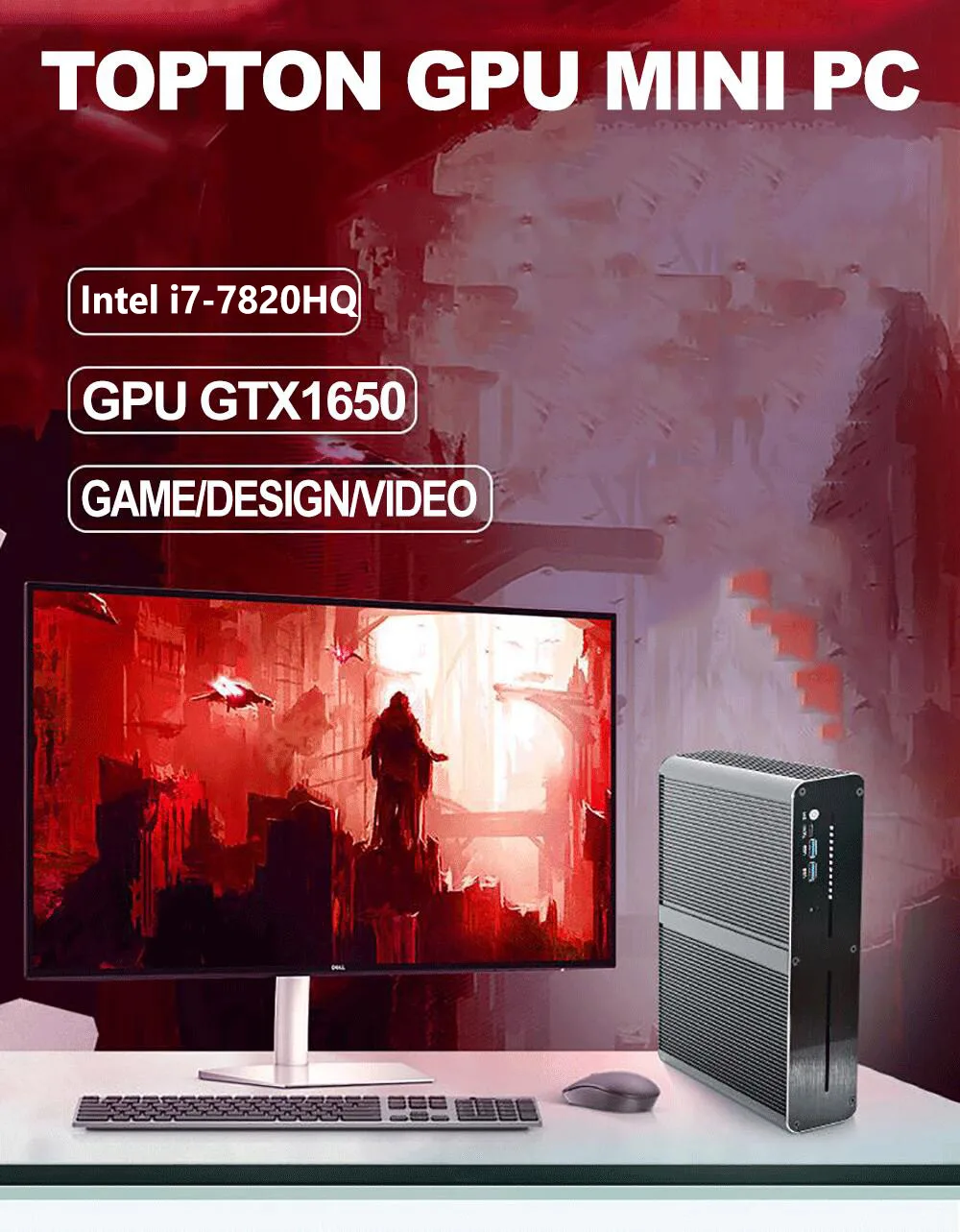 Topton Dedicated Card Gaming Mini Pc Intel i7-7820HQ GTX 1650 GDDR5 GPU Desktop Computer Win 10 Pro HDMI2.0 DP DVI Multimedia Pc