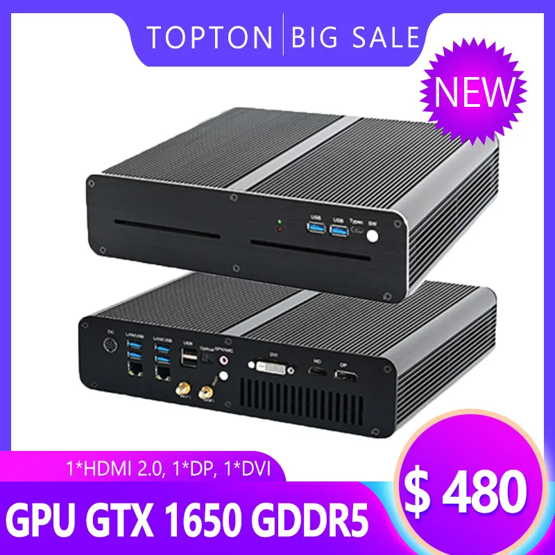 | Topton Dedicated Card Gaming Mini Pc Intel i7-7820HQ GTX 1650 GDDR5 GPU Desktop Computer Win 10 Pro HDMI2.0 DP DVI Multimedia Pc |