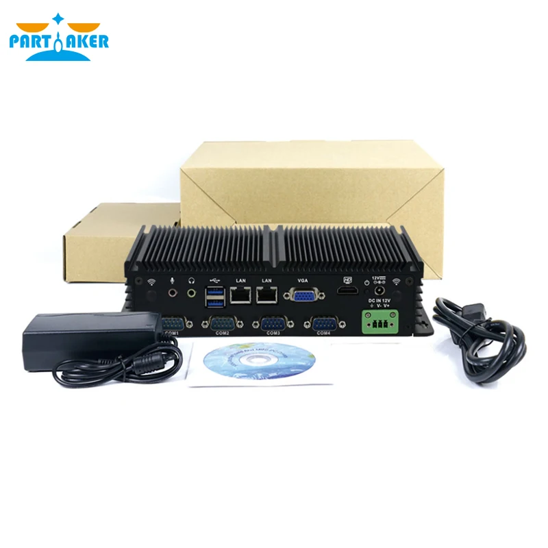 | Partaker Mini PC Intel J1900 2 Lan Fanless Industrial Computer Support GPIO SIM Slot 6 RS232 COM Port For Win 7 Win 10 |