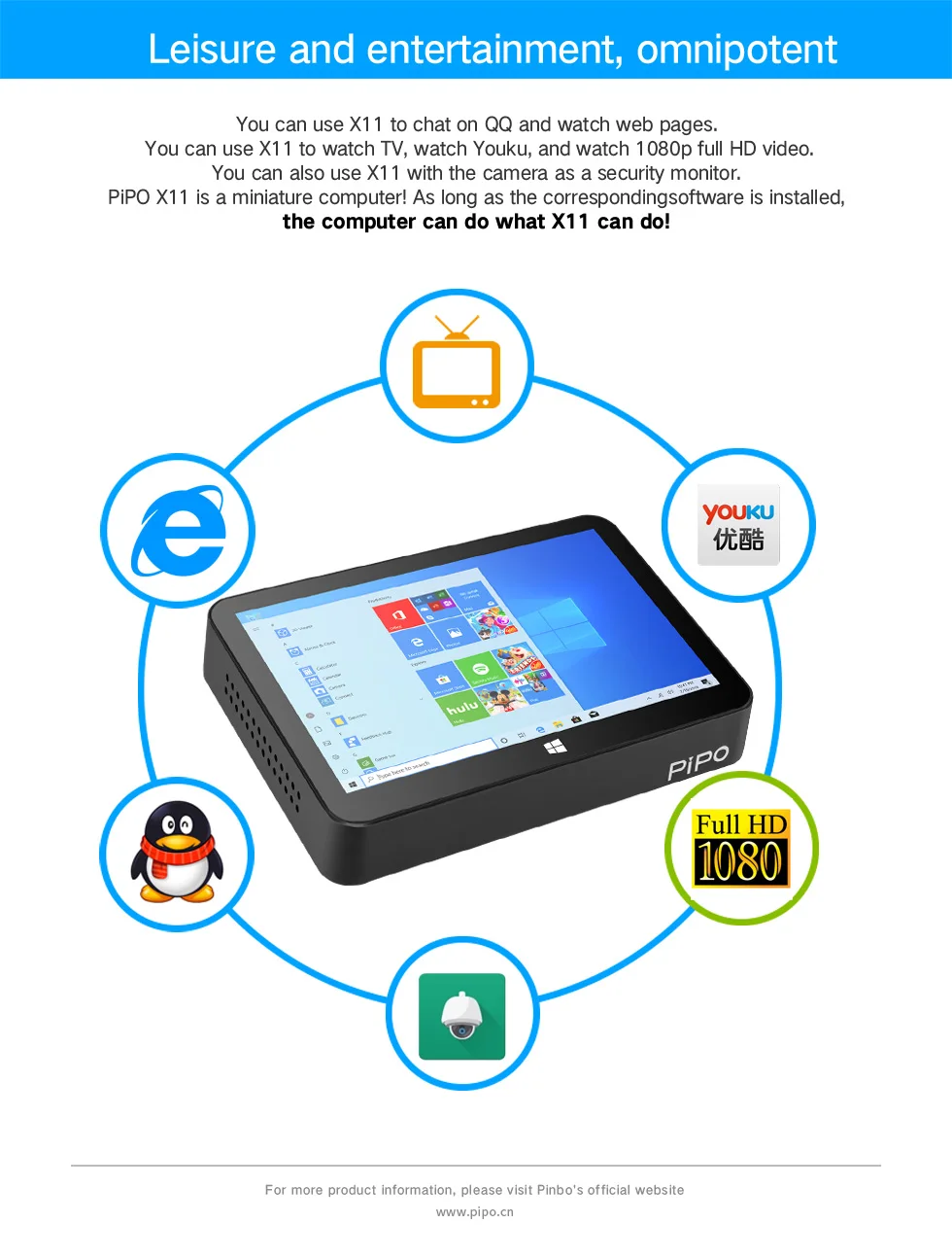 Intel Cherry Trail Z8350 9 Inch 1920*1200 IPS Pipo X11 Mini PC Windows 10 OS 2G Ram 32G Rom BT 4.0 HDMI Wifi