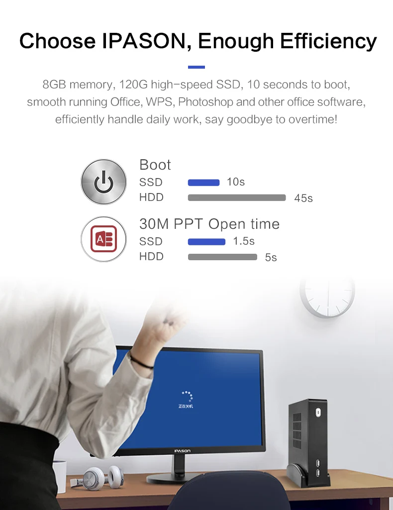 IPASON Mini Computers Intel J3160 Quad-core 120G SSD 8G Memory Home Office Business Procurement MINI Desktop PC
