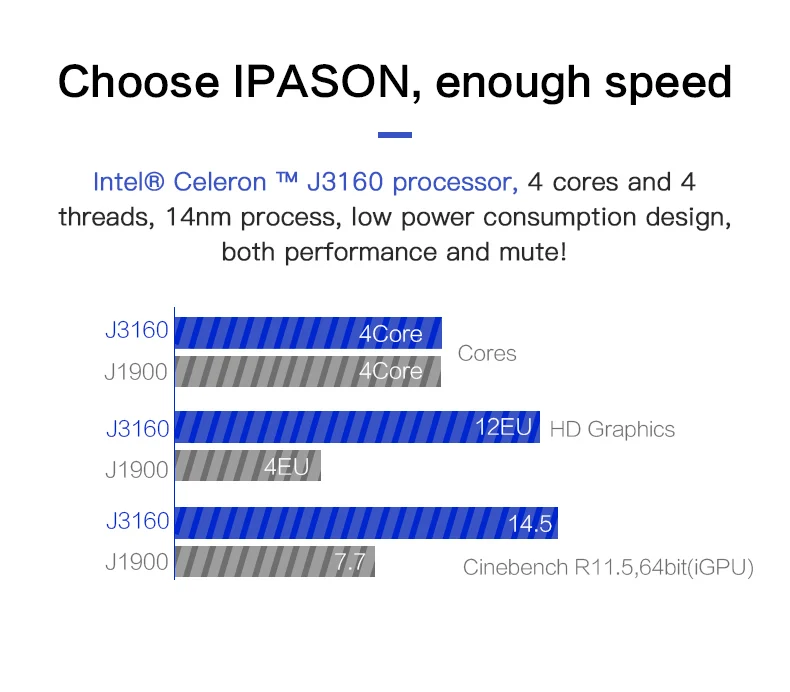 | IPASON Mini Computers Intel J3160 Quad-core 120G SSD 8G Memory Home Office Business Procurement MINI Desktop PC |